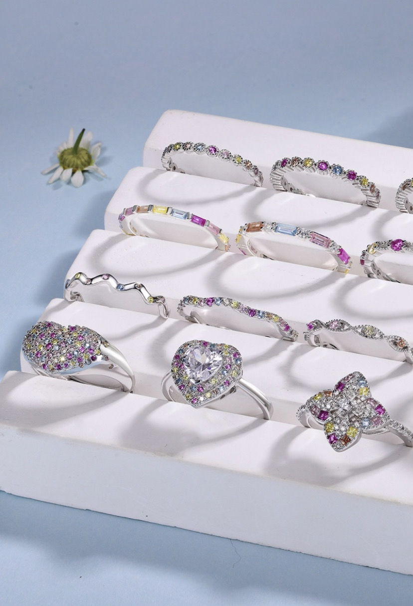 ● Ryškus ir traukiantis akį: vaivorykštės spalvos akmenys suteikia blizgesio ir žavesio, todėl šis žiedas yra puikus aksesuaras bet kokiai progai.