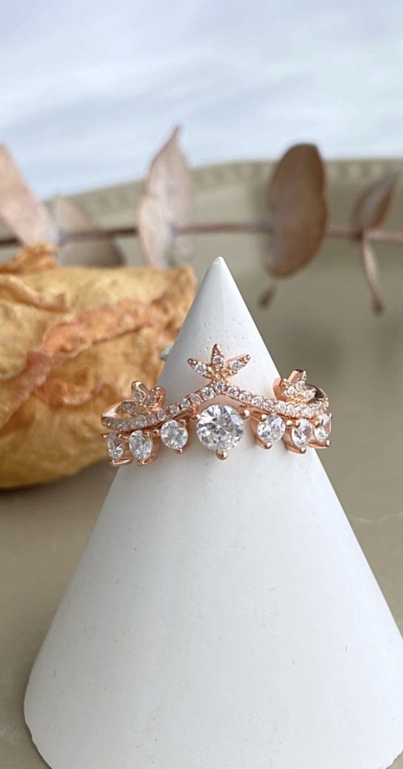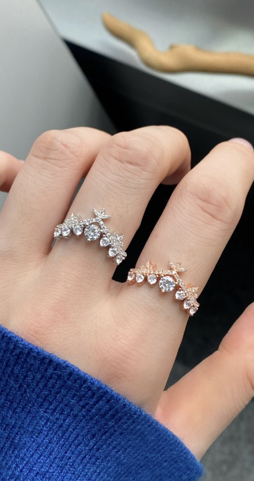 Aukščiausios kokybės 925 sidabro žiedas golden rose karūna su auktos kokybės cirkonio akutėmis, minimalistinė elegancija, persipinanti su prabangos efektu. Dėvint prie kasdieninio stiliaus įnešite žavesio, o vakarėlio metu dėl aukštos klasės cirkonio savybių žiedas spindės ir suteiks pasitikėjimo savimi