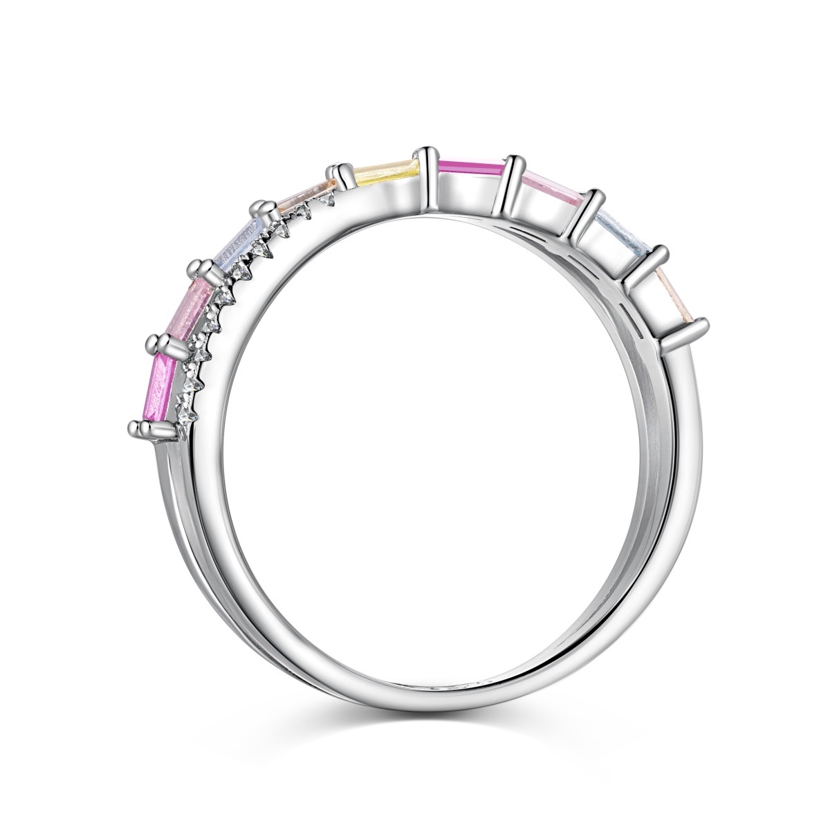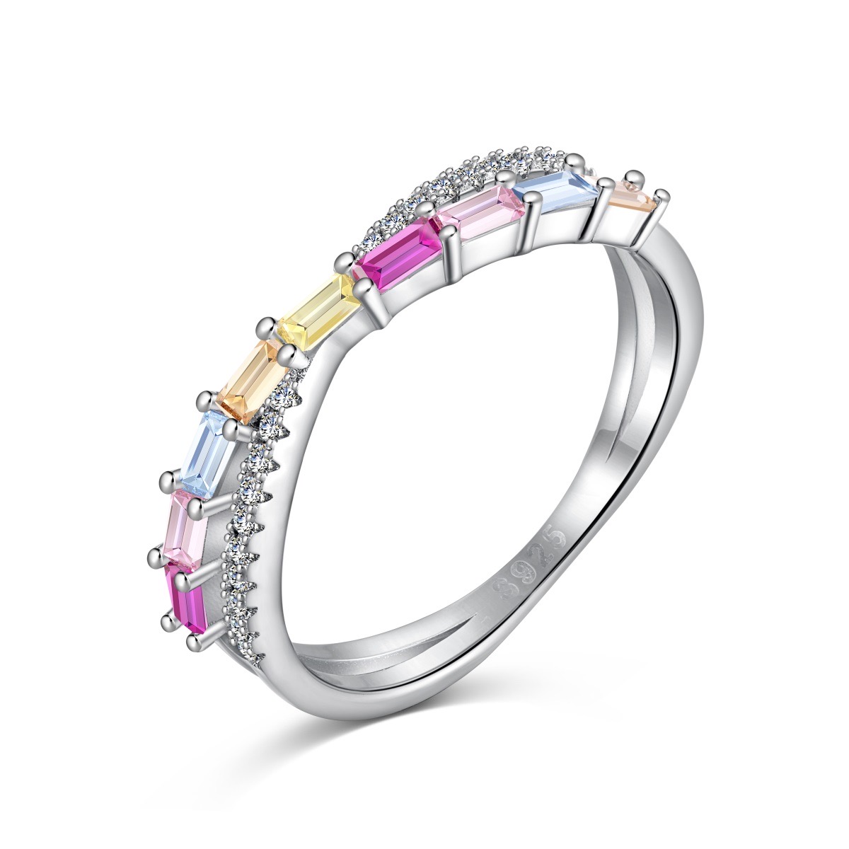 Aukščiausios kokybės 925 sidabro žiedas su spalvotomis cirkonio akutėmis, minimalistinė elegancija, persipinanti su prabangos efektu. Dėvint prie kasdieninio stiliaus įnešite žavesio, o vakarėlio metu dėl aukštos klasės cirkonio savybių žiedas spindės ir suteiks pasitikėjimo savimi